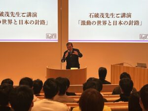 石破茂先生 新歓講演会 投稿日: 2026年4月20日2026年4月27日 投稿者: 広報局長 🌸新歓講演会🌸 4/15(水)和泉図書館ホールにて、 石破茂先生にご講演頂きました。 日本と世界の歴史に触れながら、「平成」という時代の意義、そして弊部が最も大事にしている「議論」の重要性についてご講演頂き、その後新入生の質疑にもお答え頂きました。 ご多忙の中、貴重なお時間を割いて弊部講演会にご登壇下さった石破先生に心より厚く御礼申し上げます。